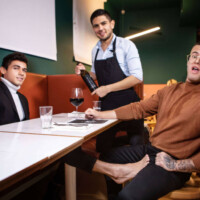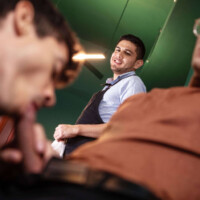 After Clark Delgaty’s boyfriend breaks up with him at their Valentine’s Day meal, his cute waiter does a little match-making and brings over hot solo diner Ashton Summer. Ashton doesn’t wait for their waiter to come back to start with an appetizer of playing footsie under the table.