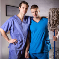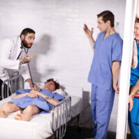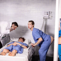 Nothing makes you feel better than a good dick, and at this hospital, there’s lots of sexual healing going on. First, Clark Delgaty finds a glory hole while cleaning up, and starts a naughty workplace romp with nurse Benjamin Blue! The pair sneakily fuck under a patient’s nose while Dr. Tony D’Angelo spies on them through the hole.