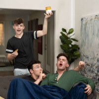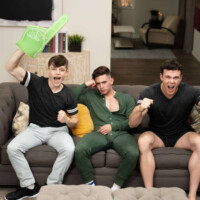 Trevor Brooks was looking forward to relaxing in front of the TV after finals, but his jock brother barges in with his buddy, Clark Reid, and steals the remote to watch the game while Clark makes Trevor sniff his armpit… but Trevor likes it! He makes sure Clark is soon watching his ass more than the screen, and Clark starts rubbing it with his foot and ending with a fun flip fuck.