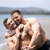 Deacon and Danny look super cute together playing around on the beach, plus they are hot as fuck! They walk along the beach before they start playfully wrestling and getting worked up. Back at the studio Danny swallows Deacons uncut cock before Deacon rims him and pounds his tight hole.
