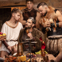 I kinda feel like I’m watching a Marvel movie or something here… King of the Norsemen Papi Kocic thinks it’s just another day, feasting with his fiercest warriors, servant twink Dean Young sitting on his lap and refilling his goblet… until spy Sir Peter delivers terrible news: Dracock the Dragon is approaching, and the god Loki will do nothing but feed on the chaos and destruction. The god himself appears, and the king begs him to find Thor, the god of thunder, to save them, as under the table Dean helps himself to a taste of the royal cock. When Loki leaves on his quest, Papi rims the twink and spanks his ass before pounding the bottom doggystyle.