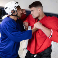 After lots of conflict and tension on the ice, Dom King and Malik Delgaty hit the locker rooms and nearly come to blows! Referee Mateo Zagal puts himself in the middle, and he’s got a solution to stop them from fighting: he gets on his knees and blows both of them before they take turns fucking him. Talk about de-escalation!