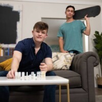 Skater Cameron Neuton wears his pants so low, when he bends over to pick up his skateboard, his roommate Jake Preston gets a full view of that ass in his face. These two horny twinks get so worked up they spend all afternoon putting their tongues and cocks in each other’s hole.