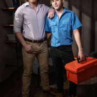 Offices can’t run without a hot cup of joe, so when the coffee machine is broken, Kyle Connors and his coworker call in janitor Joey Mills to repair it. The hot twink’s shirt gets doused in coffee, so he takes it off, and Kyle loiters to watch, checking him out and even jacking his cock before he has to get a taste of Joey’s ass in doggy style. Once Kyle tastes that sweet ass he has to slide his thick cock in.