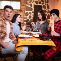After a long day in the winter wilderness with their girlfriends, Liam Alyesto gets more than just warmed up as he watches Malik Delgaty take off his coat. Liam opens the butt flap in his onesie and flashes Malik his ass, and when they sit down for some fondue he shows the muscular hunk just what he has in mind on the big baguette, stroking it suggestively and sucking the end. While the women are in the kitchen, Liam gives Malik a hand job under the table, then slips off to the bedroom.