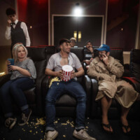 Movie theatre flasher Dante Colle sits down near Michael Boston and his girlfriend in the movie theater and doesn’t even try to hide that he’s jacking his cock under his coat… and Michael’s into it! Once the lights go down, so does Dante, sneaking over to suck Michael’s cock. His girlfriend notices and storms out, and the horny guys are caught by twink usher Troye Dean, who’s soon persuaded to join them for a hot 3some .
