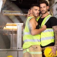 Papi Kocic and Pol Prince are ready for a break after a hard and sweaty morning, but Pol forgot the coffee. Papi takes the opportunity to make a hole in the doughnut box and slide his thick cock through one of the delicious pastries, then talks Pol into touching it!