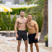 The fun in the sun continues in Palm Springs. After being the first to get into the vacation spirit and instigate a foursome, newcummer Casey is still horny! As he lays out in his lounge chair, he starts trailing his hands over his chest, down to his groin, and sniffing his armpit as he pulls out his cock and strokes himself before being joined by Devy, Josh, Manny, and Dale.