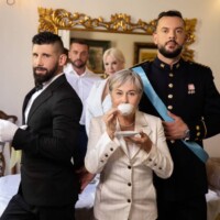 Loose cannon Euro prince Sir Peter is on thin ice with his mother, the queen, after yet another scandal hits the news. But that doesn’t stop him from hitting on palace waiter Justin Jett right under her nose! After Justin spills some tea on Sir Peter’s lap when he’s taken by surprise by the prince grabbing his ass, the horny royal puts Justin’s hand right on his cock, then takes it out under the table.