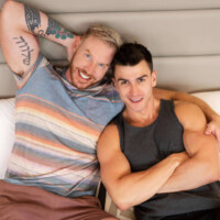 Eddie is back, and he’s blond! He’s joined by sexy brit Thomas who can’t believe how big Eddie is. “Fuckin’ hell! You’re twice the size of me!” Thomas marvels as he gets his hands on Eddie’s biceps. Eddie licks Thomas’s armpits before working down to his cock. They take turns rimming each other before Thomas fucks Eddie’s muscle butt raw.