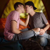 Joey Mills and Troye Dean get chilly late at night while camping in the mountains and decide to warm up by cuddling under the blanket. Joey isn’t ready for bed and starts grinding his ass on Troye’s bulge. Troye gets so horny he rips open Joey’s briefs and fucks him in spoon position.