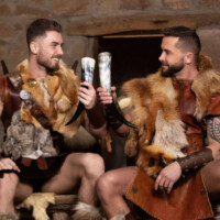 If beefy Vikings are your thing you’ll love Tyler Berg and Craig Marks in this scene. When Viking Craig Marks bends over to pick up his drinking horn, Tyler Berg surprises him by sliding his horn into that tight hole! The guys wrestle, and Tyler pins Craig to the floor and feeds him his cock. The guys suck each other, and Tyler rims Craig before pushing up his leather skirt and fucking his tight ass doggystyle.